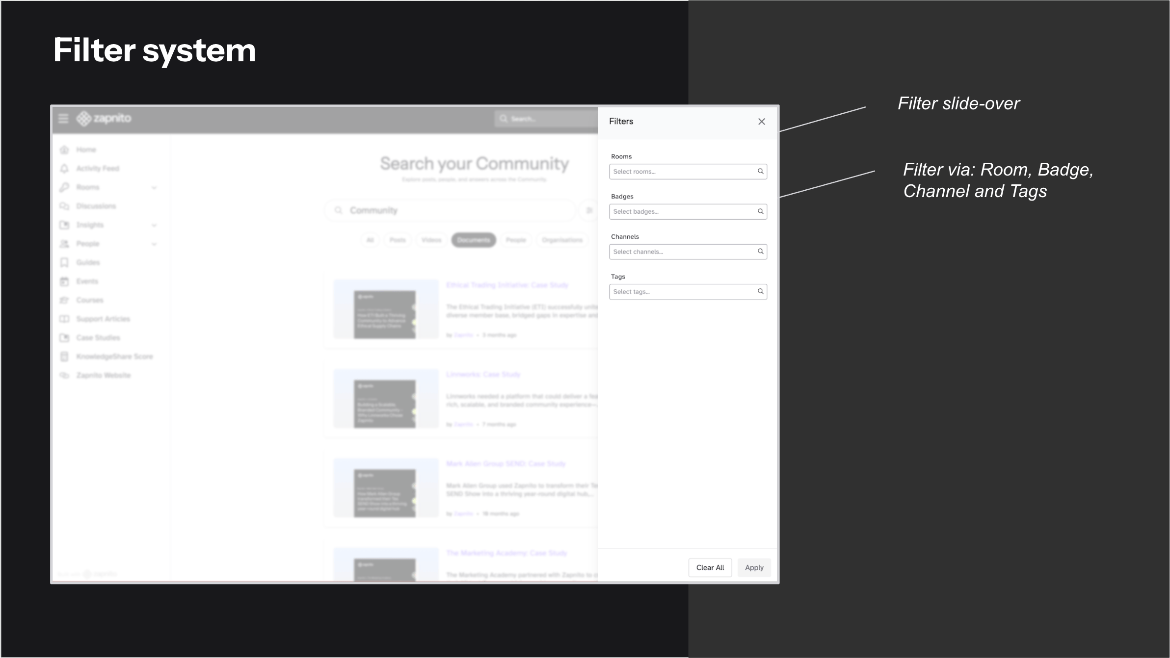 By surfacing the right knowledge and expertise faster, members are more likely to participate, interact and share. - Advanced filtering help members narrow results by channels, rooms, dates or content types ensuring they find exactly what they need.