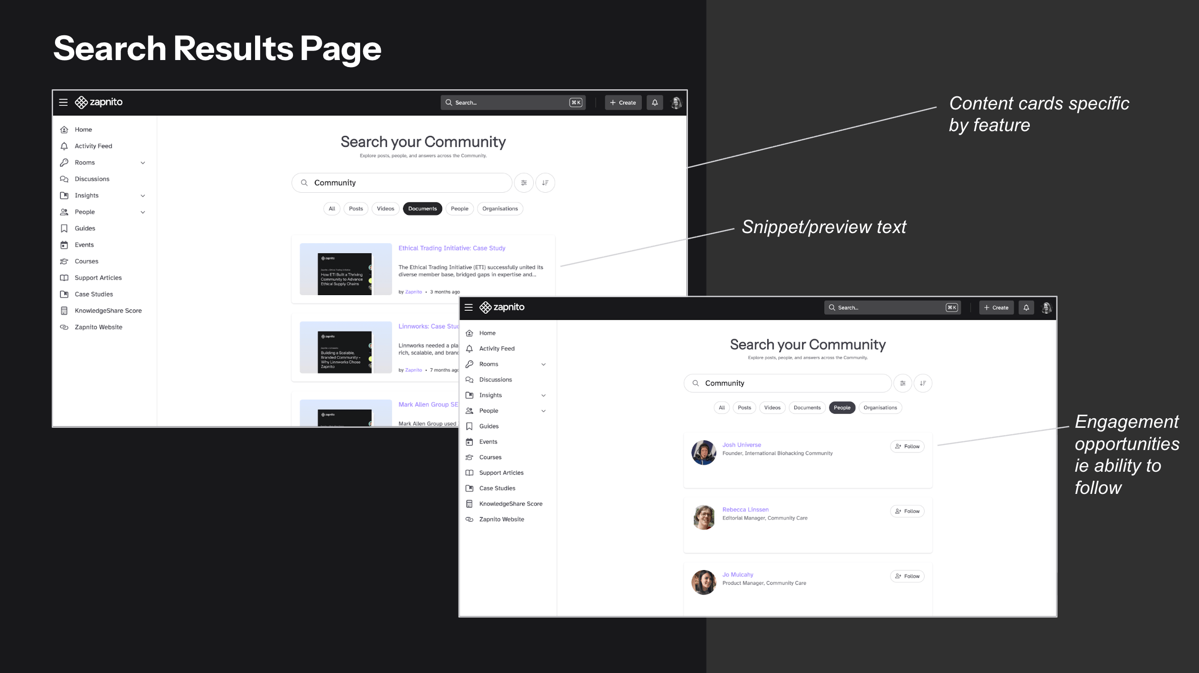 Find everything - from experts and posts to videos and organisations, in one seamless view, reducing friction and boosting engagement. - Smarter, More Relevant Results