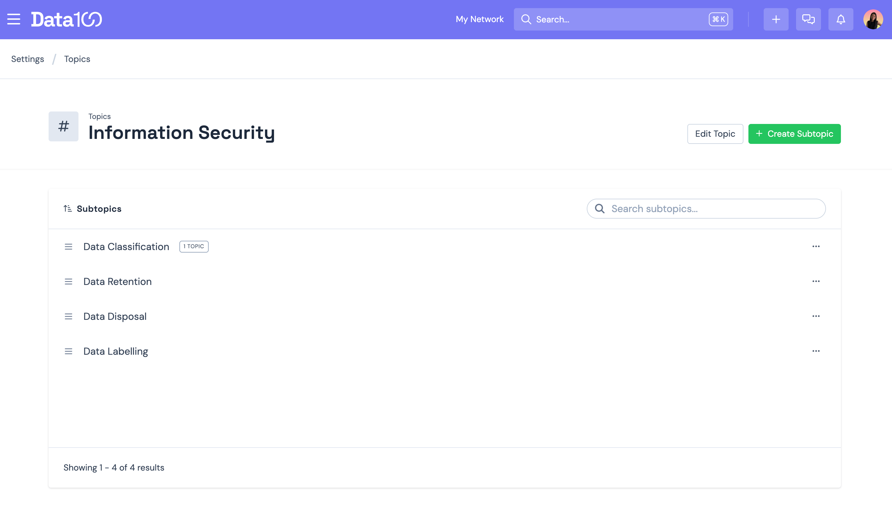 Use the three-dot menu to manage or edit existing Topics and Sub-topics