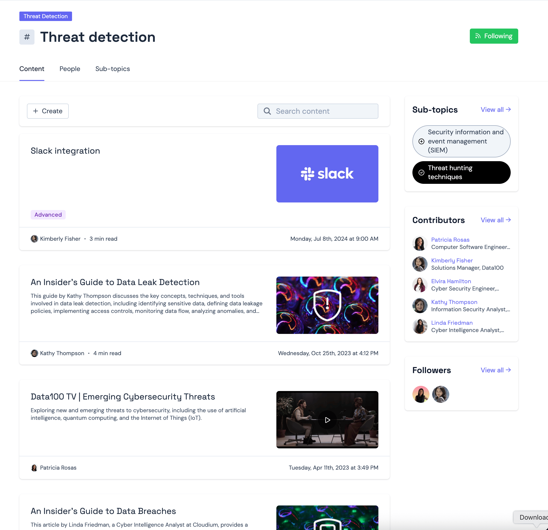 - People - Lists both Contributors (those who’ve published under the Topic) and Followers.