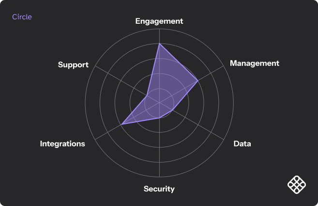 Circle.so is a highly templated platform designed for entrepreneurs and creators to share and monetize courses and events. It has a lot of engagement features for a lower cost platform but its limited customization and analytics means larger businesses will quickly struggle at scale to integrate the experience into their wider brand ecosystem.