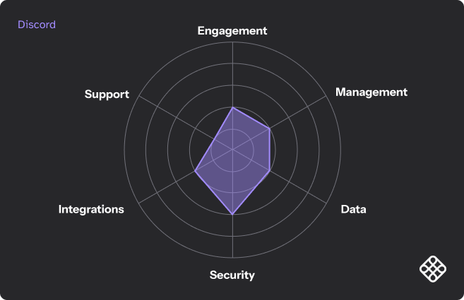 Discord is a communication platform designed to bring people together, whether it's for school clubs, gaming groups, or global communities. It offers a space where users can chat, voice call, and video call, making it easy for friends and communities to hang out virtually. Like Slack, Discord is a quick and cheap way to create a community proof of concept but can quickly get messy at scale and has limited ways for members to share knowledge outside long chat threads.