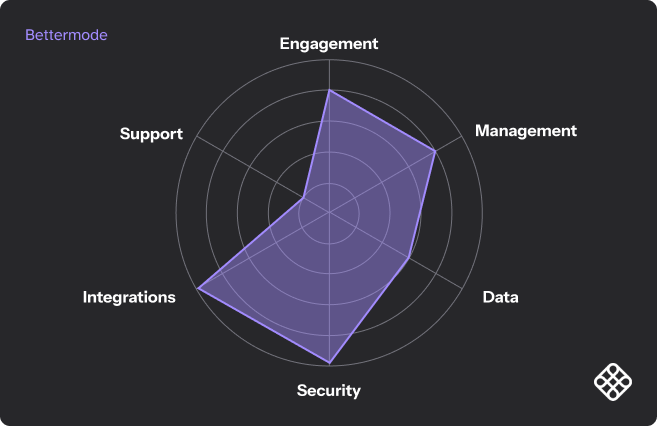 Formerly known as Tribe, Bettermode is a customer-focused community platform aimed at increasing user engagement and reducing support tickets by centralizing product information. Its heavily templated approach and focus on an activity feed makes it easy to get set up quickly but has many limitations at scale.