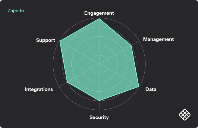 As you can see by the graph comparing different online community solutions, Zapnito (highlighted in red) is the best all-rounder. Some online communities may not need this level of enterprise-grade functionality and support, but for B2B brands, this comprehensive offering provides everything needed drive long-term impact.