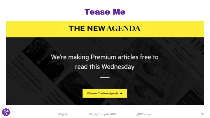 You can them move content between those categories when necessary in order to reward and grow your community. So the FT yesterday made its premium content open to all, in a shameless tease to grow their subs and their average order value.