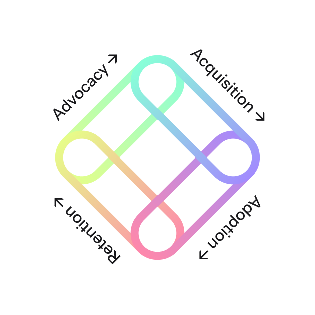 Having your own community enables you to bring your audience into the community-growth flywheel. This evolution of the sales funnel is a continuous cycle of acquisition, adoption, retention, and advocacy. Community-led growth helps prospects make purchase decisions and delivers value to existing customers, going beyond the product or service you offer, and includes engagement analytics to track progress.