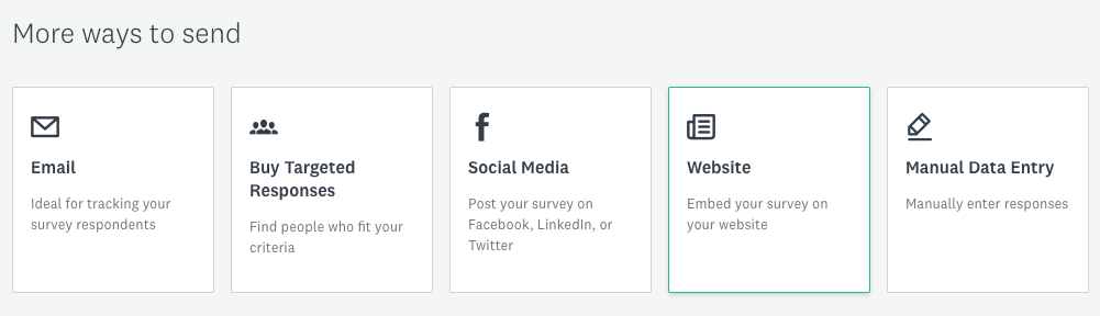 To embed your survey, head to the Collect Responses page and select Website, then choose the Embedded Survey option.
