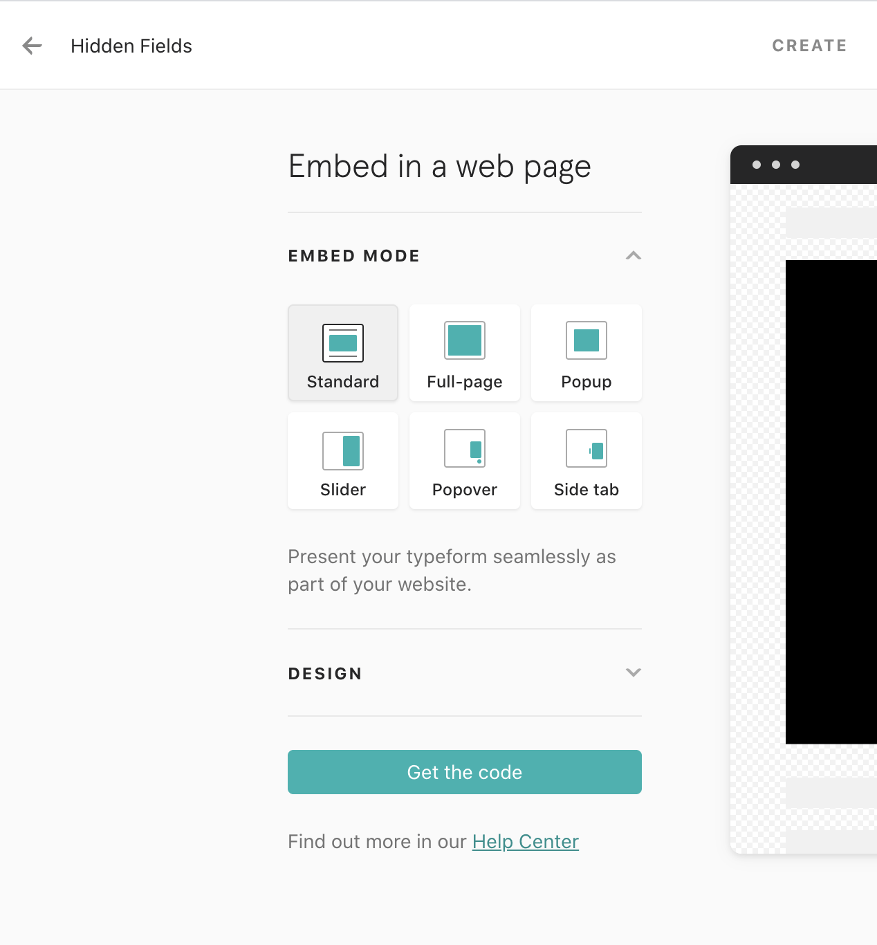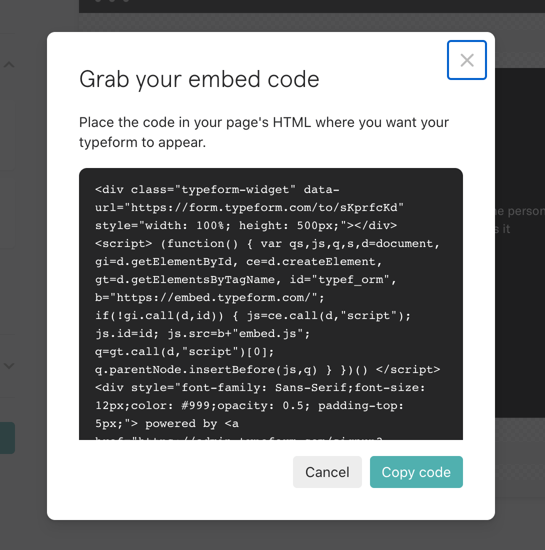Once you have created your Typeform, head to the Share tab where you will find the option to Embed in a web page. Here you can select the embed mode that will suit your site best.