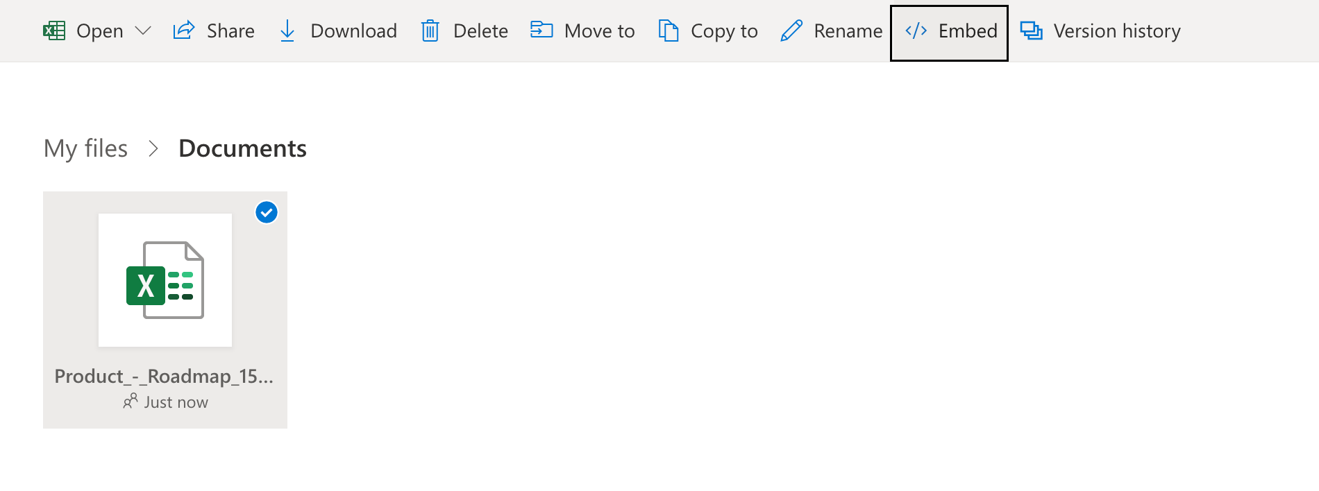 Firstly, hover over and select the document you would like to embed. You will then find the Embed tab at the top of the page.