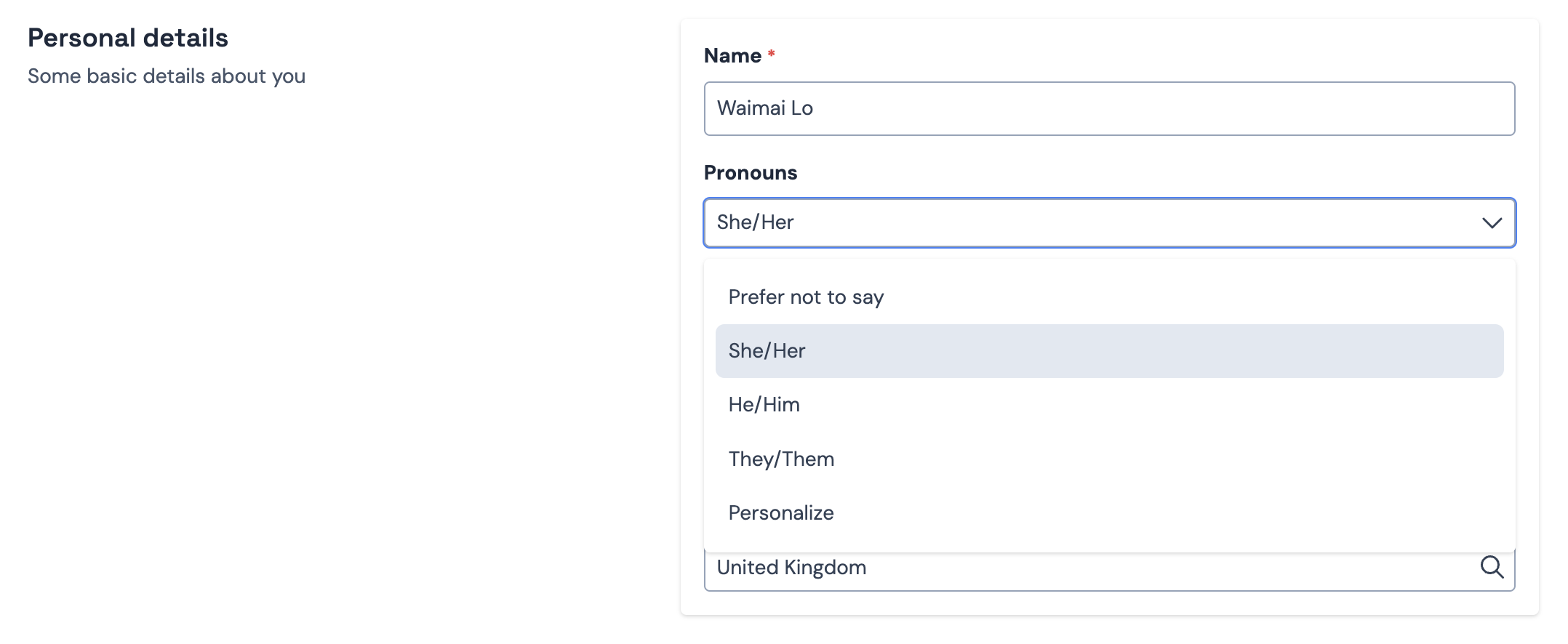 Choosing 'Personalize' will enable you to insert your own custom pronouns via a free text field.