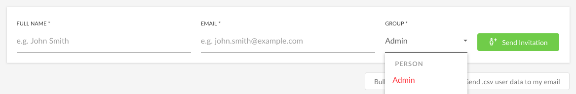 Enter the full name and email address of the person you want to invite and select from the Group menu the group into which they should be added when they complete registration.