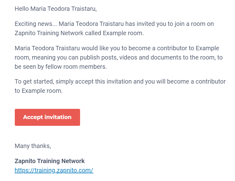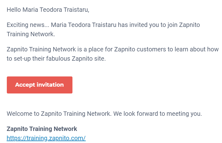Click the ‘Send Invitation’ button and an email will be sent to the invitee that looks a bit like this: