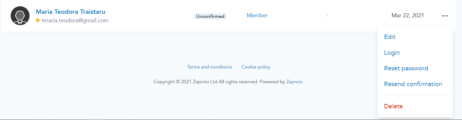 If you need to resend a user’s invitation at any time, find their name in the list of users then use the menu at the end of their table row to ask them to confirm their email address. Choose the ‘Resend confirmation’ option and an email will be sent.