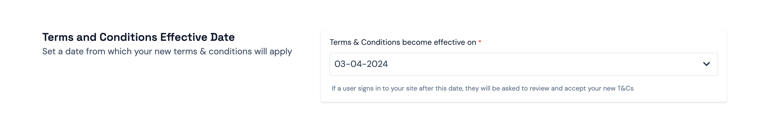 On this page, you will find the T&Cs effective date selector.